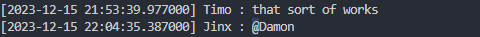 now that we can resolve ID’s to names, we can label messages with real names as opposed to usernames, and replace mentions of ID’s with mentions of names: