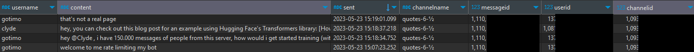 With that out of the way, let’s talk about my eventually successful process of creating fine-tuning a language model with Discord messages.
