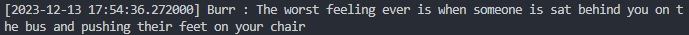 And when that is running, the bot can start generating messages, it quickly showed that the model that I used to train on, (opt-125m