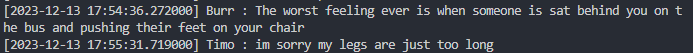 Doing this however, I ran into a few issues that are specific to discord chats, and an iMessage chat history doesn’t have: